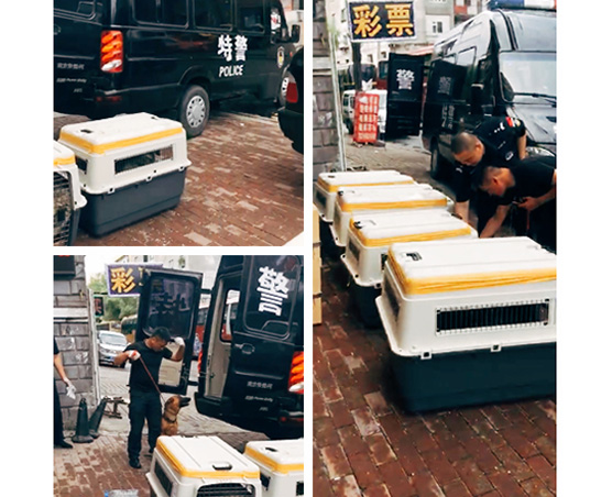 英國(guó)斗牛犬(美國(guó)——中國(guó))因?yàn)槌赡暧⑴O奶?**怕中暑,專(zhuān)業(yè)的寵物保姆給寶寶航空箱放了冷凍礦泉水瓶來(lái)給它降溫。即使長(zhǎng)途運(yùn)輸,寶寶狀態(tài)非常好,在辦公室等待主人接他回家,主人非常滿意,感恩